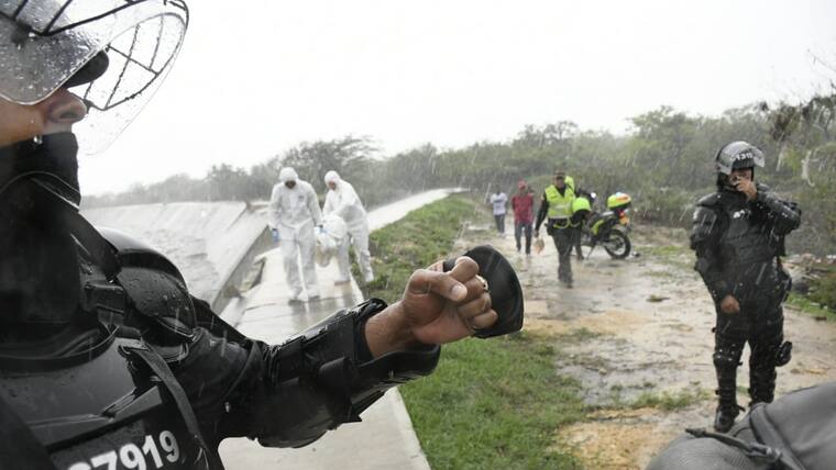 Al sitio llegaron peritos de la Sijín, quienes realizaron la diligencia de levantamiento de cadáver. Estos fueron acompañados por miembros del Escuadrón Móvil Antidisturbios, pues fue demasiada la gente que se acercó a mirar la escena. Los uniformados de la fuerza de choque de la Policía rodearon la zona.