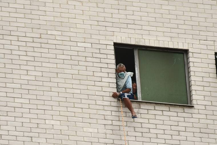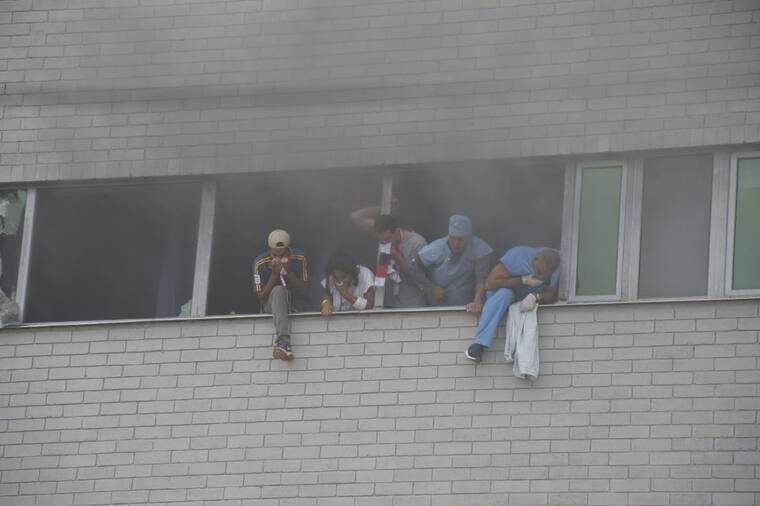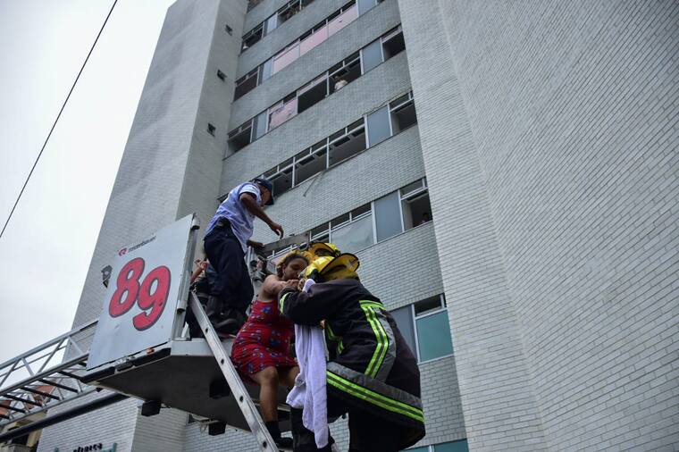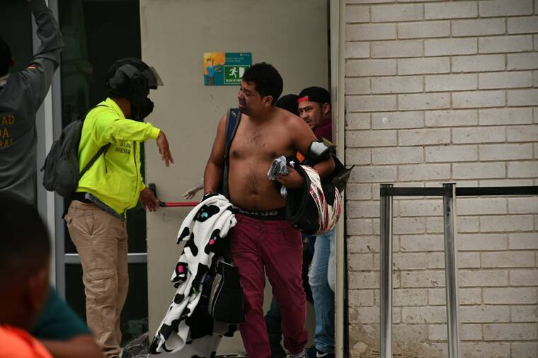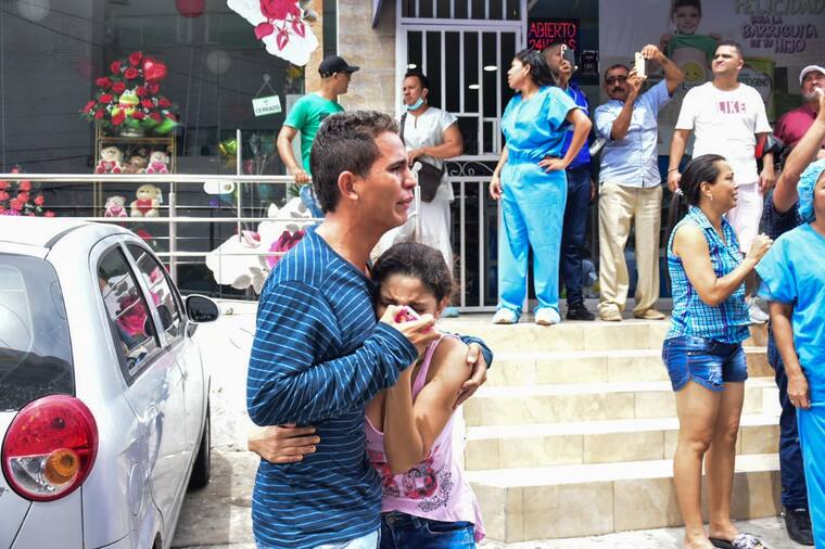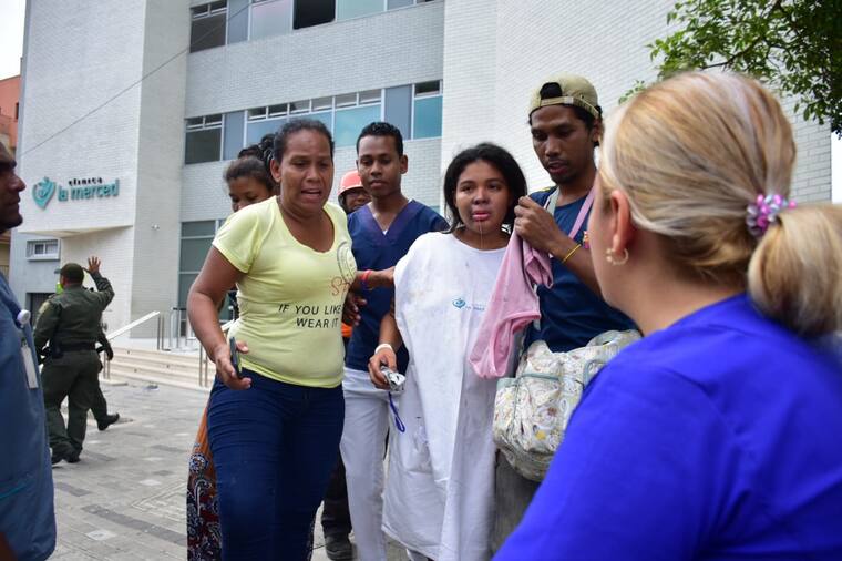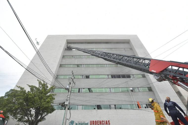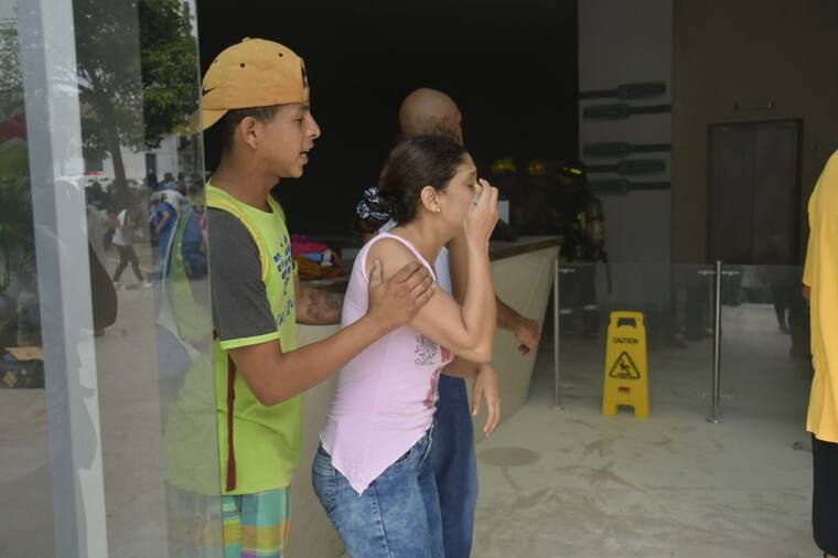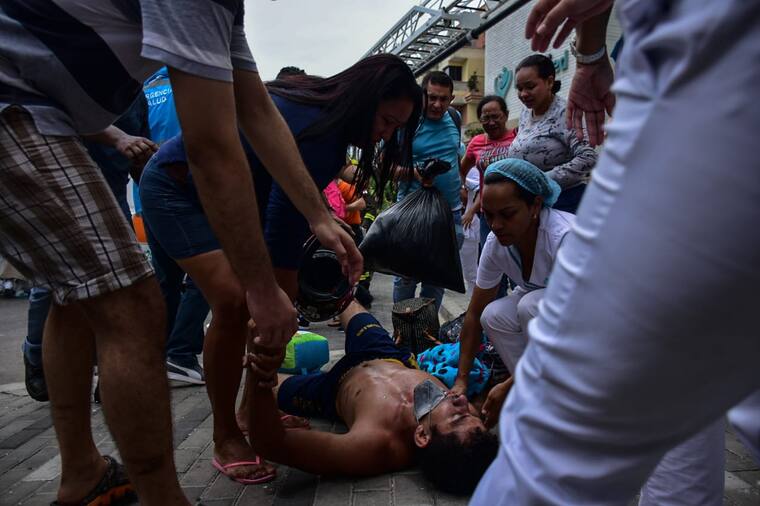 Miembros del cuerpo de Bomberos que hacen presencia en el lugar, sacan en camillas y con ayuda de las más de 10 máquinas al personal atrapado en el centro de salud. Fotos de César Bolívar, Mery Granados y Josefina Villareal.