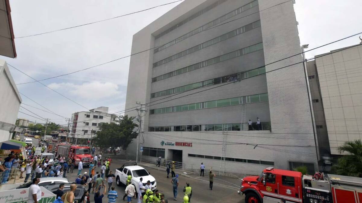 Con ayuda de camiones escaleras, los bomberos rescataron a las personas que, en medio del desespero, se asomaron por las ventanas del centro médico para intentar saltar.