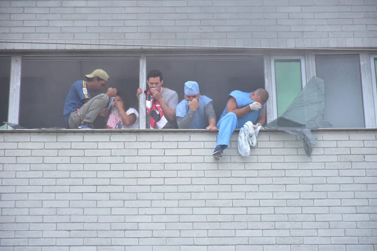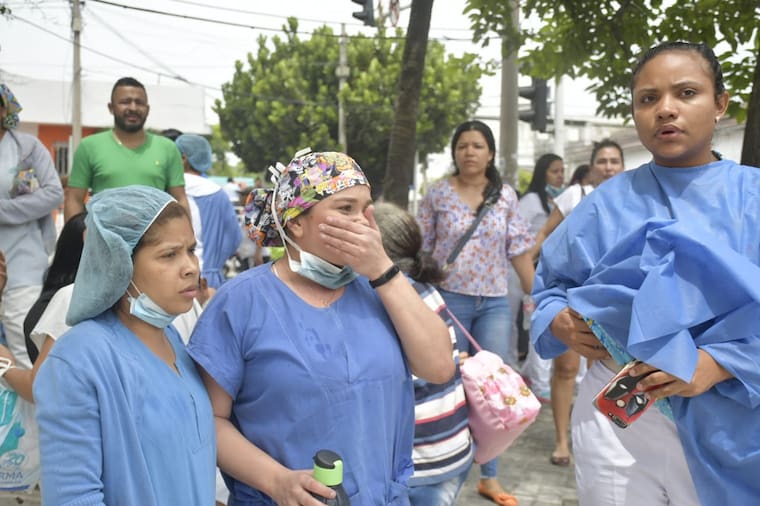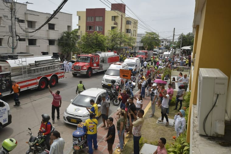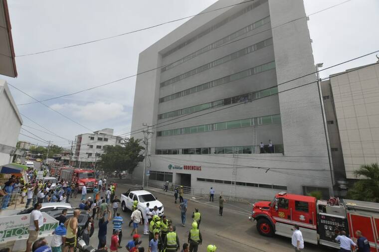 La emergencia fue atendida por el Cuerpo de Bomberos y autoridades locales. El centro de salud está ubicado en la carrera 38 con calle 61. Fotos de Josefina Villareal, Mery Granados, César Bolívar y cortesía de Wasapea a EL HERALDO.