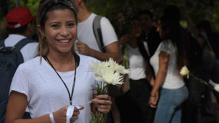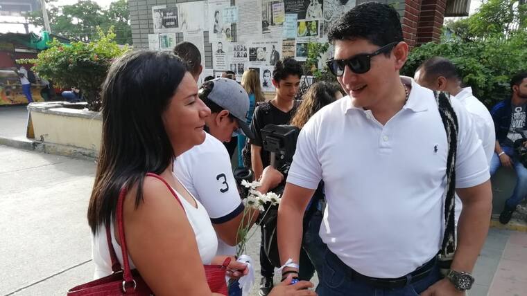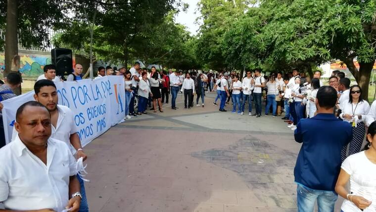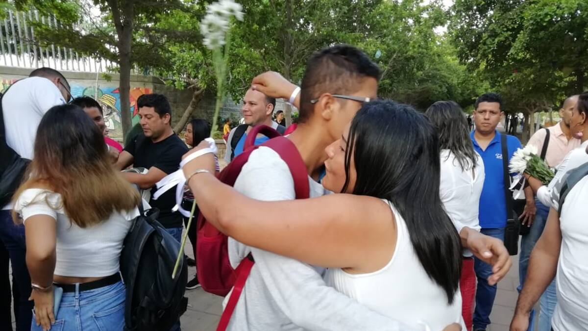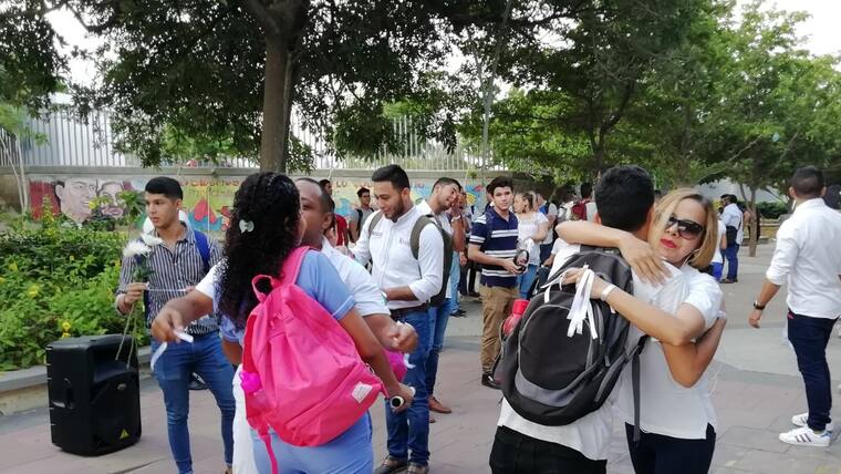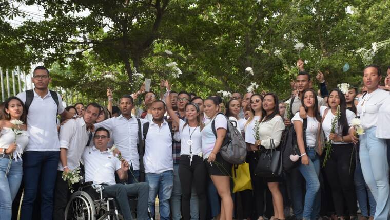 Decenas de estudiantes y trabajadores dela Universidad del Atlántico se reunieron vestidos de blanco, con flores y pañuelos para rechazar los hechos de terrorismo dentro de la institución.
