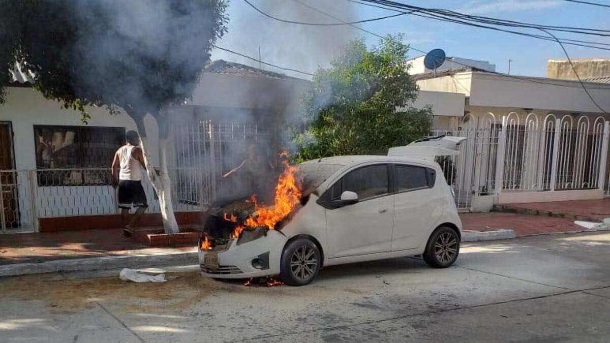 El hecho sucedió en la calle 63B con carrera 29. Al parecer, el recalentamiento del motor del Chevrolet Spark GT blanco ocasionó el incendio del mismo.