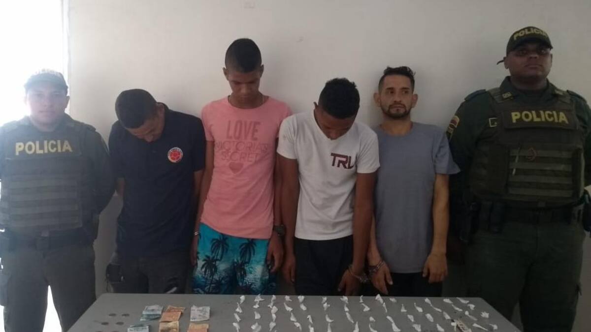 En la carrera 19 con 27B, en Las Nieves, la Policía Metropolitana de Barranquilla capturó a cuatro hombres señalados de portar sustancias psicoactivas las cuales, al parecer, estaban vendiendo.