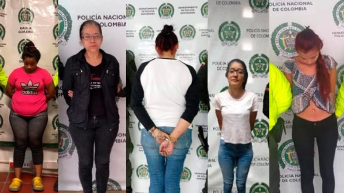 Laura Yulieth, fue capturada en la calle 31 con carrera 1, en plena vía pública, de Bucaramanga. Diana, en Armenia; Laura Alejandra, arrestada en Bello, Antioquia y Yelitza, aprehendida en Maicao, La Guajira.