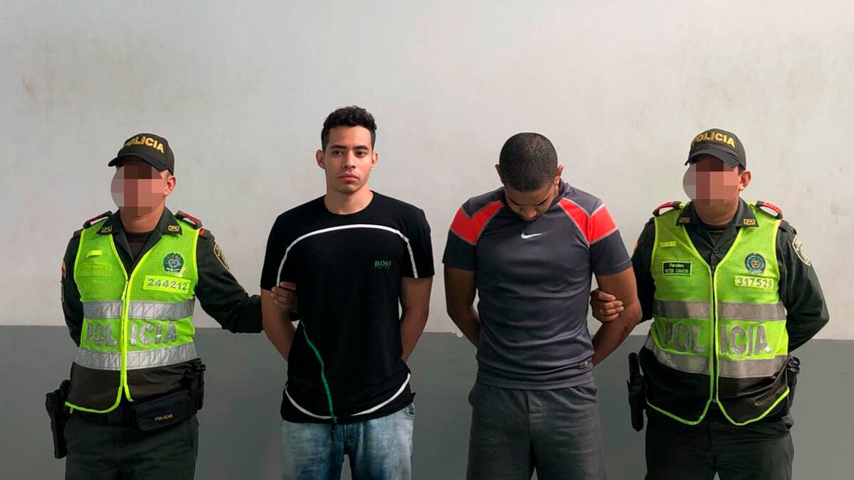 Los capturados fueron identificados por la Policía como Joan Severiche Beltrán, de 26 años, y Arley de Jesús Riquett Baldovino, de 23 años. Sobre este último, las autoridades señalaron que tiene antecedentes judiciales por el delito de hurto.
