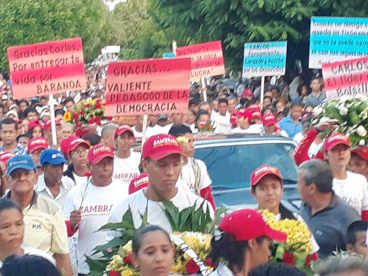 Los restos de Carlos Zambrano Palacio, quien era candidato a la Alcaldía de Baranoa, fueron despedidos este miércoles por una multitud. “Gracias valiente pedagogo de la democracia, gracias por entregar la vida por Baranoa”, con mensajes como estos sus familiares y seguidores realizaron el recorrido fúnebre. El excandidato murió este lunes, luego de que presentara complicaciones de salud cuando se encontraba descansando en su casa.