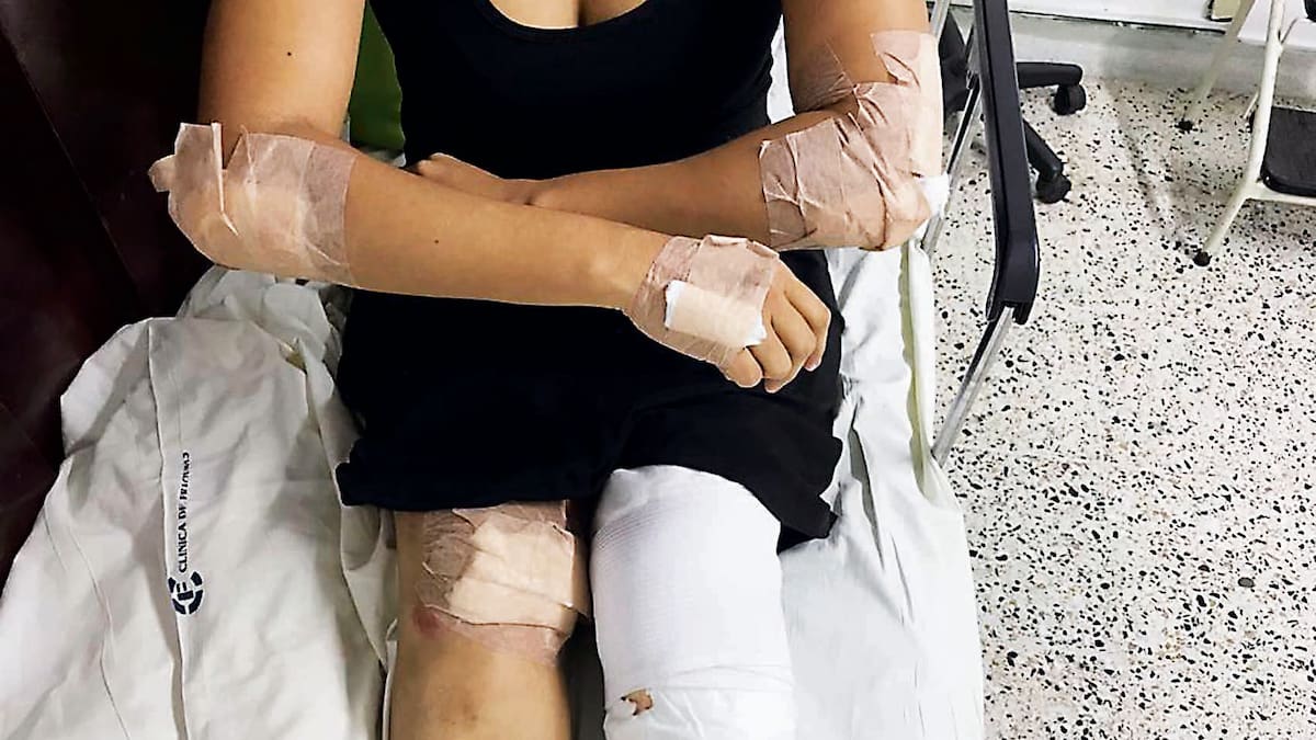 La caída le produjo a Sandra un esguince de rodilla, contusiones en el codo y en la cadera y hematomas en varias partes del cuerpo. Sus hijos pequeños sufrieron múltiples golpes y raspones, mientras que el adolescente de 16 años tuvo un esguince en el codo y contusiones en rodillas y cadera.