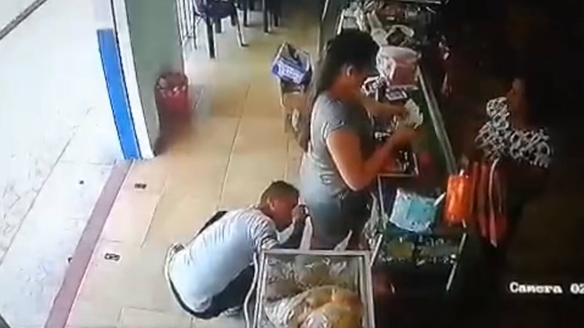El hombre, un repartidor de productos de tienda, casi fue descubierto por la mujer, pero rápidamente se puso de pie y le hizo entrega de la factura a la tendera. Sin embargo, un hombre que se encontraba afuera de la tienda llamó a la mujer y le advirtió lo que estaba sucediendo, por lo que llamaron a la Policía.