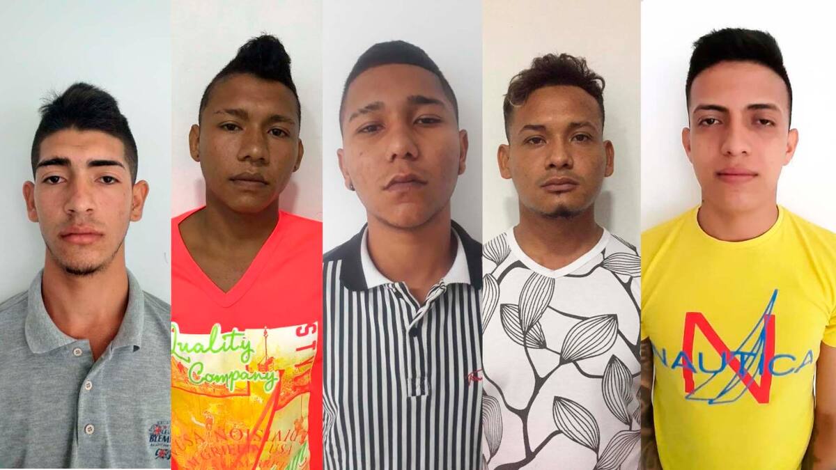 En los operativos llevados a cabo este jueves fueron capturados cinco presuntos integrantes de la banda delincuencial que fueron identificados como Luis Ángel Coronado Jiménez, alias el Flecha, John Mario Lotero Díaz, alias el Bofe; Camilo Andrés Cuadros Sierra, Gerson Enrique De la Hoz Santiago y Jaime Luis Escorcia Hernández, alias el Bote, quienes deberán responder por los delitos de concierto para delinquir agravado y tráfico o porte de estupefacientes.