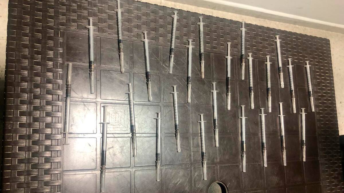 Los policías encontraron en uno de los bolsillos del bluyín del joven una bolsa de plástico transparente, en cuyo interior había 40 jeringas que contenían una sustancia química similar a la de la heroína.