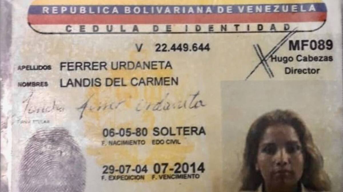 Landis del Carmen Ferrer Urdaneta, nacida el 6 de mayo de 1980, es lo que refleja el documento utilizado por Aida Merlano durante su estadía en Venezuela.