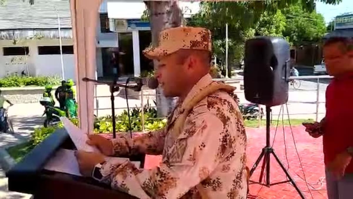 En un acto público realizado en la mañana de hoy en Plaza Central de Baranoa, que le dio cumplimiento a un providencia emanada por el Tribunal Administrativo del Cesar, el comandante del Batallón de Artillería No. 2 La Popa, teniente coronel Henry Orlando Leguizamón Galindo, ofreció disculpas públicas por los asesinatos de Roberto Henry Taguer Bolívar, 22 años; y Cristian Camilo Santiago Redondo, 19.