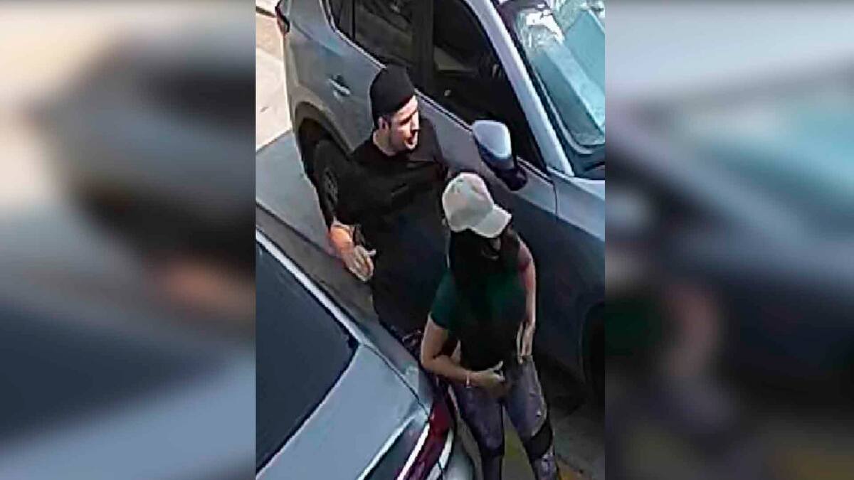 Posteriormente se retira y minutos después regresa al parqueado con la mujer, se suben a su carro y se marchan.