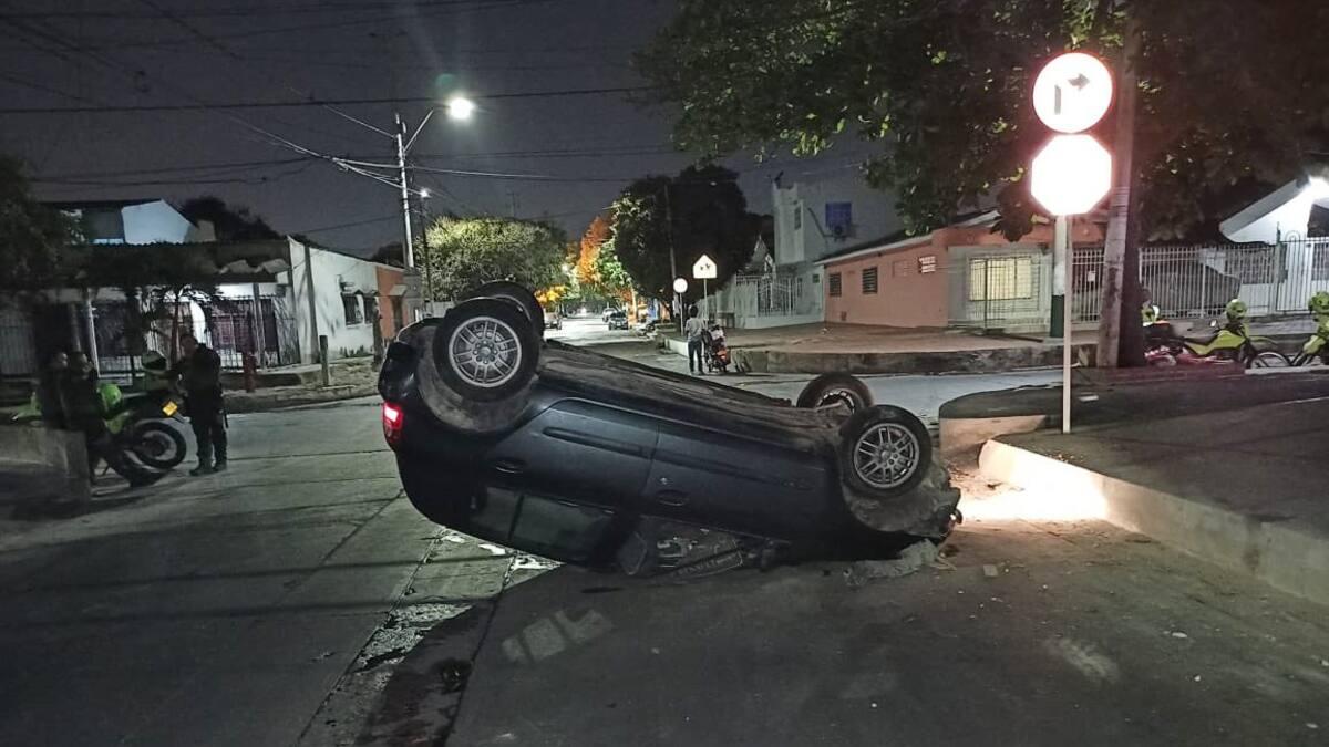 Cuadras más adelante, el conductor que se dio a la huida a alta velocidad, colisionó con un andén y terminó volcado sobre la vía.