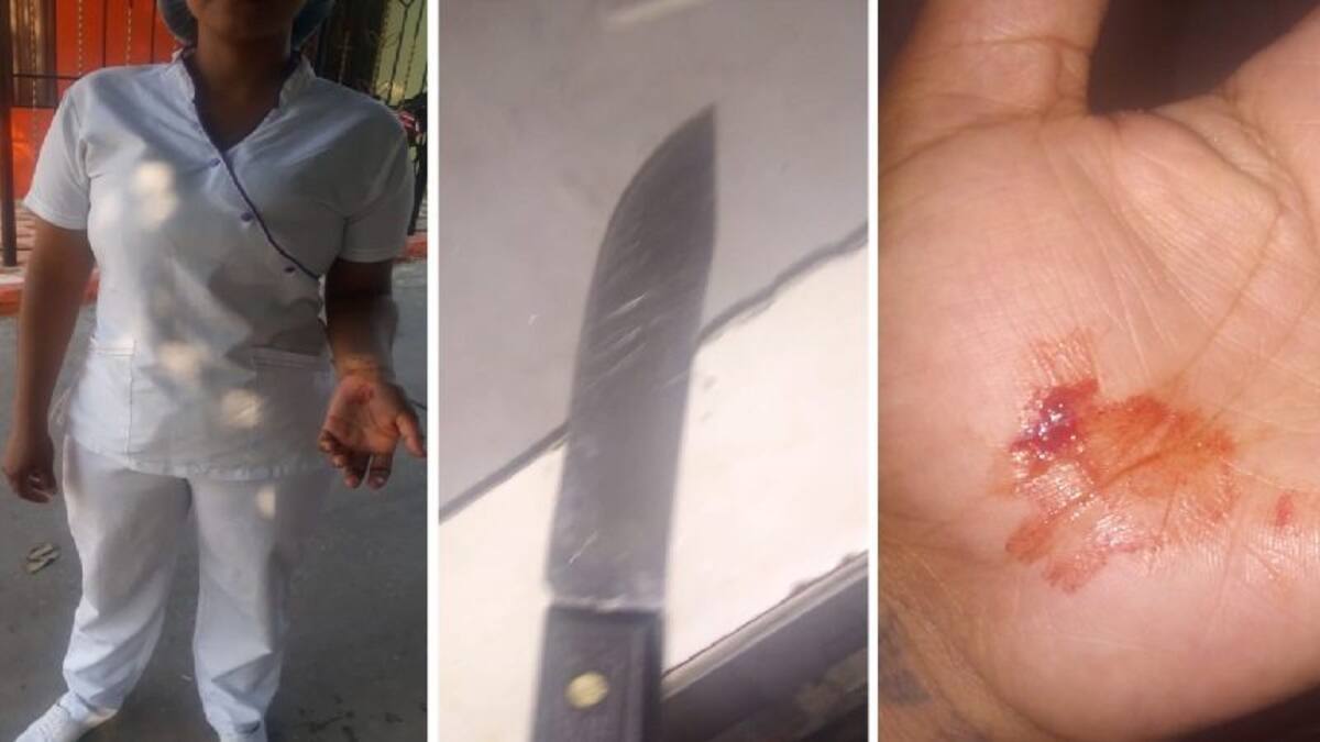 La enfermera intentó acelerar el paso para evitar la confrontación con los hombres por estar en amplia desventaja; sin embargo, el mismo sujeto tenía un pico de botella en la mano e intentó apuñalarla en el abdomen a lo que la mujer metió la mano y resultó herida.