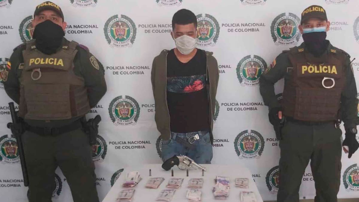 A Flórez García lo requisaron y le encontraron un revolver calibre 38 con cuatro balas y el dinero robado al ciudadano, mientras que el piloto de la moto logró escapar.