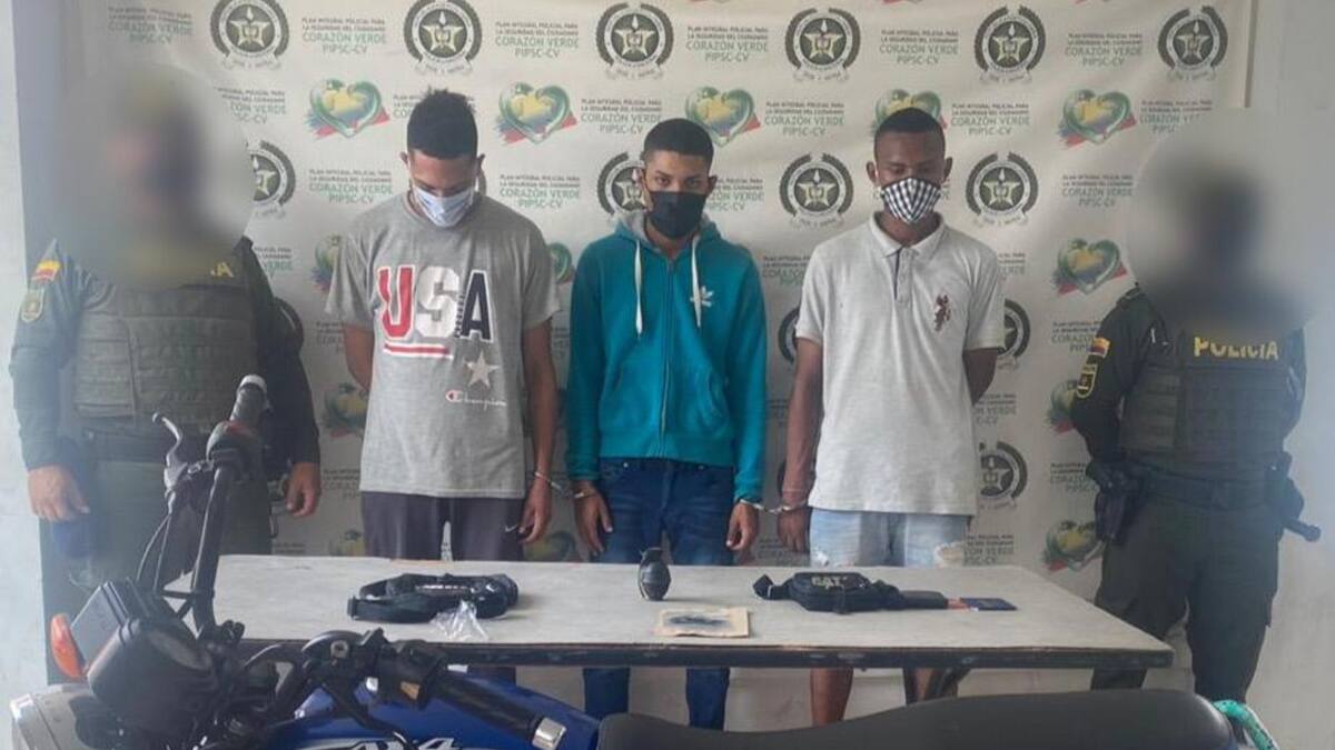 Fuentes de la Policia Judicial señalaron que los capturados con la granada son: Anibal García Puentes, de 21 años, a quien le figuran dos antecedentes por el delito de porte ilegal de armas; Jhon Jairo Vega Manrique, 21 años, dueño de un antecedente por porte ilegal de armas; y Yarot Joel Barrera Iglesia, 21 años, a quien le aparecen dos anotaciones por porte ilegal de armas.