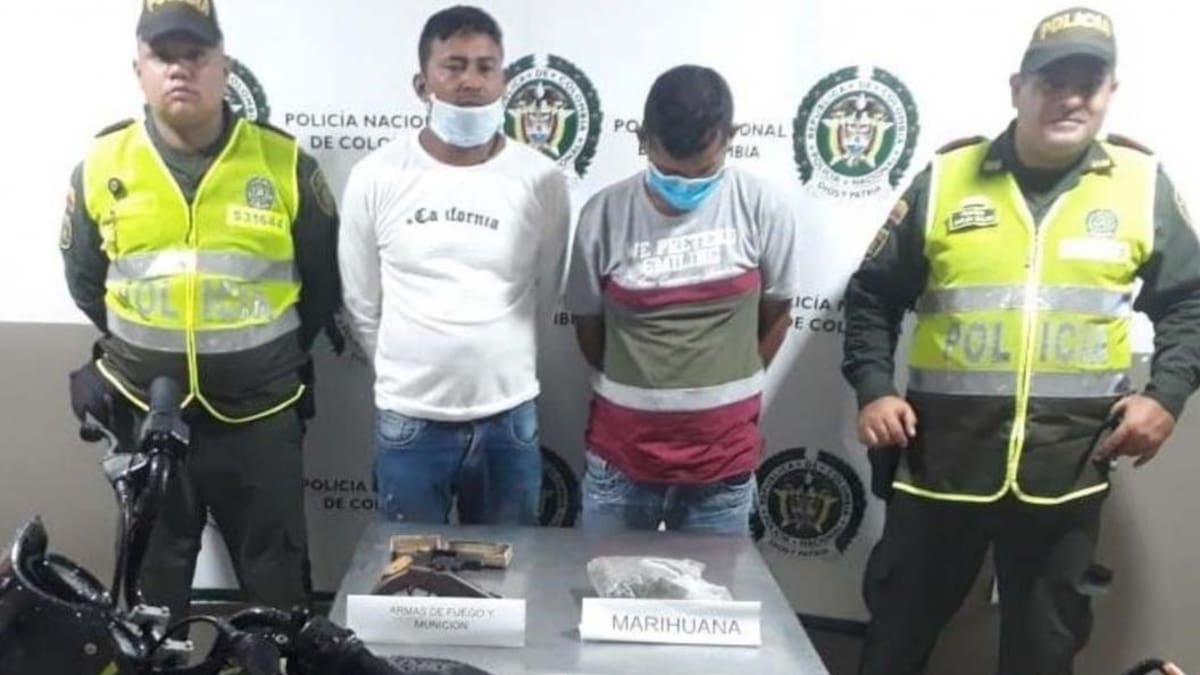 A los detenidos le incautaron dos armas de fuego: un revólver marca Colt calibre 38 largo y un arma de fuego de fabricación artesanal, también una motocicleta marca Auteco, modelo Bóxer, de color negro, número de matrícula GVW-30F.