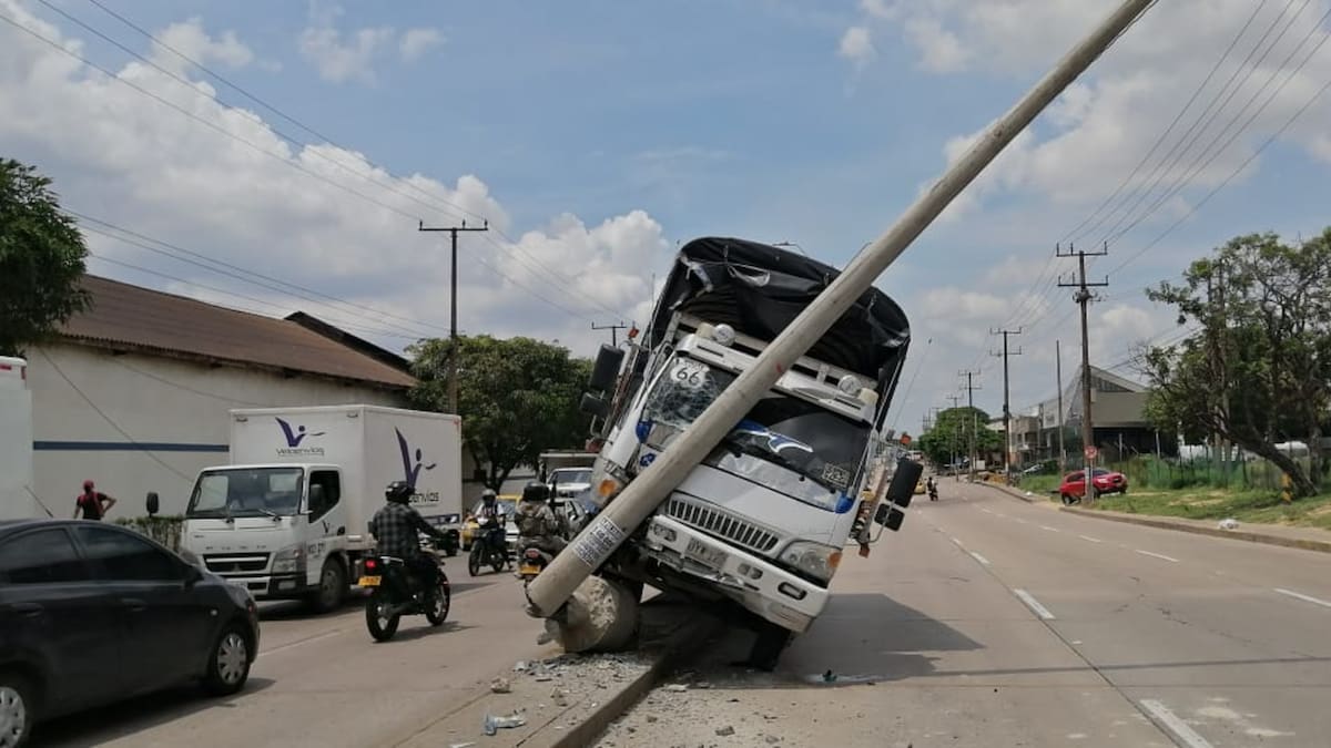 El siniestro ocurrió sobre entre las calles 78 y 79 y causó, además de daños en el vehículo, que el poste quedara inclinado sobre cables de alta tensión. Por fortuna, la parte frontal del camión sostuvo el poste evitando que este cayera afectando aún más la movilidad y dañar el cableado.