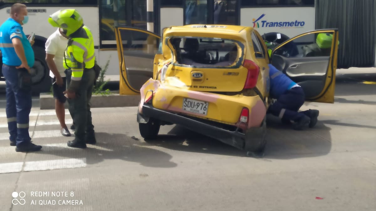 De acuerdo con el reporte de la Policía de Tránsito, el conductor del taxi, Rogelio de Jesús Castro Ruiz, y la pasajera, Evianis Ospino Martínez (de 27 años), resultaron con politraumatismos por el accidente y fueron trasladados en ambulancia a la Clínica la Victoria para recibir atención médica.