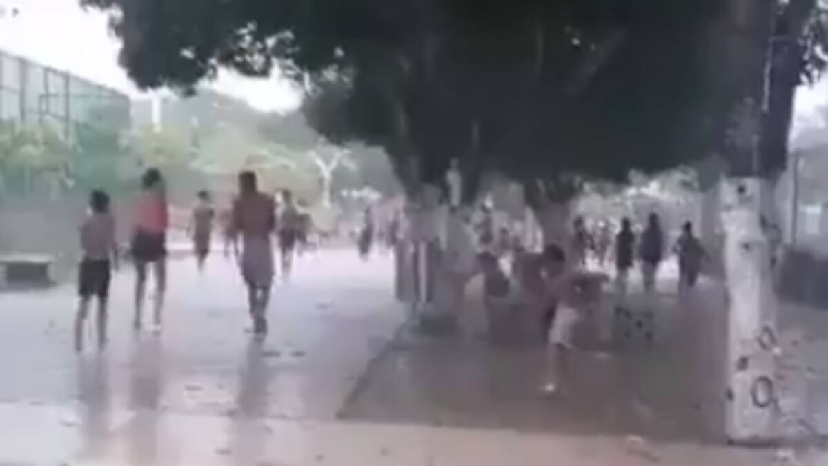 'El coronavirus no se pega cuando está lloviendo… No mandan a los niños al colegio, pero sí los dejan que se vengan a bañar', dice la mujer que captó en video lo ocurrido.