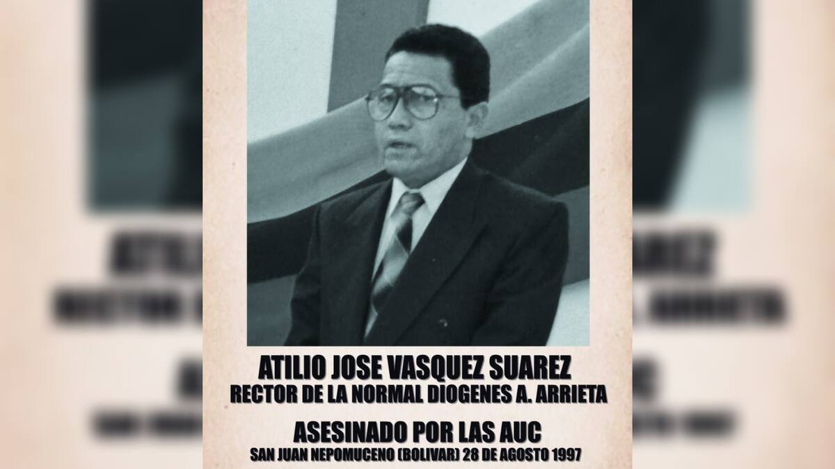 El juez Décimo Penal del Circuito Especializado de Bogotá condenó a 35 años de prisión e impuso multa de 2.000 salarios mínimos contra Ramón Humberto Morales Morales, alias Pecas, tras hallarlo responsable de la muerte y desaparición en 1997 de Atilio José Vásquez Suárez, docente y rector del colegio Diógenes Arrieta de San Juan de Nepomuceno (Bolívar).