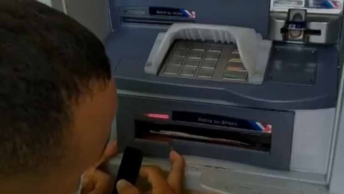 'Una fuente informa que dentro del cajero hay un hombre que tenía mucho tiempo realizando una transacción. Se hace una requisa y se revisa con detalle el cajero observando un elemento extraño, al retirarlo se trataba de una banda metálica en la banda original por dónde sale el dinero e impedía la salida', señala el reporte.