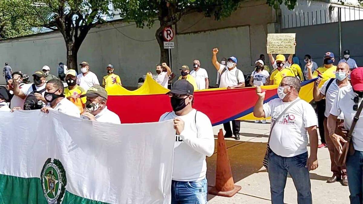 El punto de encuentro fue el parque del Cementerio Universal. Allí se reunieron pensionados de la institución, miembros de la red de apoyo, familiares de policías y personas afines, quienes portando banderas de Colombia y de la Policía, así como carteles con mensajes como 'yo apoyo a mi policía'.
