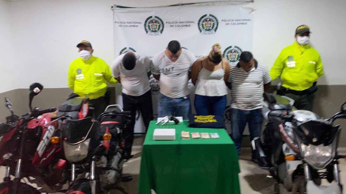 Una vez fueron alertadas del hecho delictivo, las autoridades desplegaron un plan candado para dar con la ubicación de los presuntos delincuentes. Fe así como en vía pública del barrio Kennedy, del mismo municipio, los uniformados interceptaron a tres hombres y una mujer que se movilizaban en una moto marca Pulsar, de color rojo, y en una Bóxer de color negro.