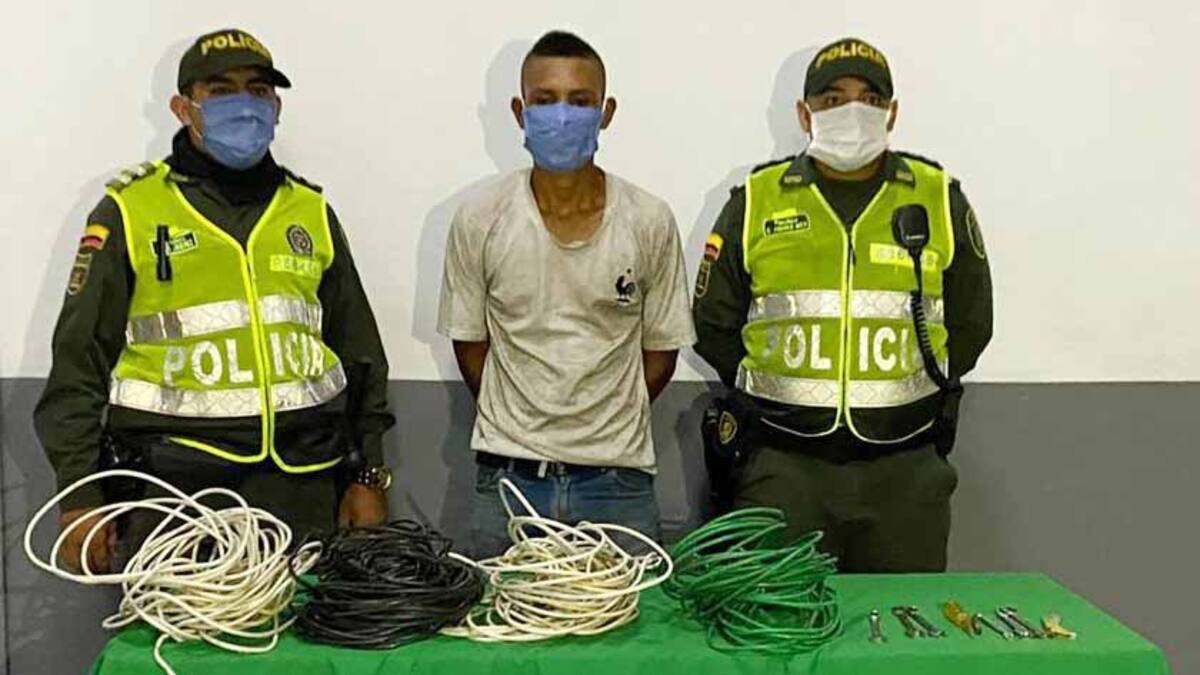 Al presunto delincuente le encontraron, además, seis llaves metálicas de diferentes diámetros, un destornillador y una navaja, elementos con los que, al parecer, cortaba los cables.