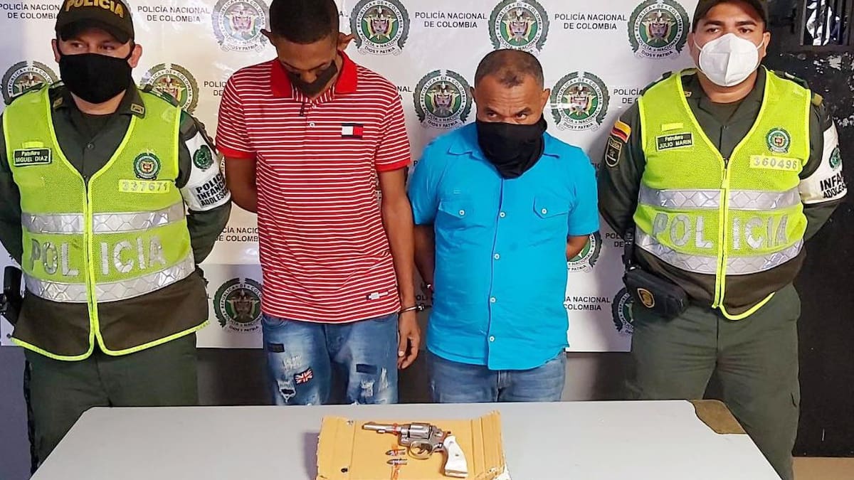 Los presuntos delincuentes fueron identificados como Hernán Darío Rojas vega, de 35 años y Johnny Palmera Camacho, de 52, quienes fueron llevados a la URI de la Fiscalía para ser judicializados por los delitos de hurto calificado y fabricación, tráfico o porte de armas de fuego y/o municiones.