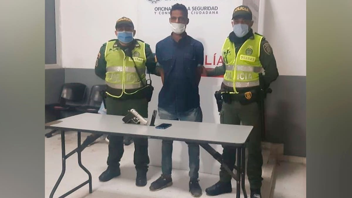 Se trata de Fredy Enrique Jiménez Zúñiga, de 37 años, conocido como ‘Karateca’, a quien le hallaron un arma de fogueo marca Ekol Firat Compact, tipo pistola, con un proveedor para la misma.
