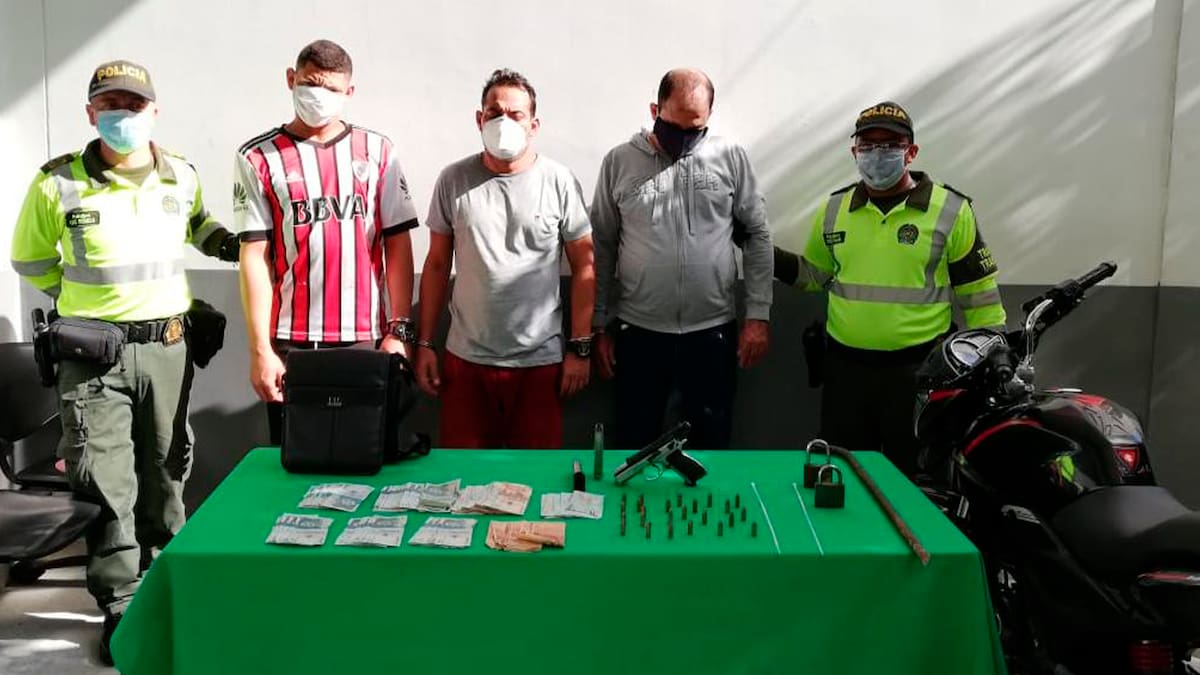 En medio de la captura, la Policía incautó un arma de fuego, una motocicleta y el monto de dinero que habían hurtado.