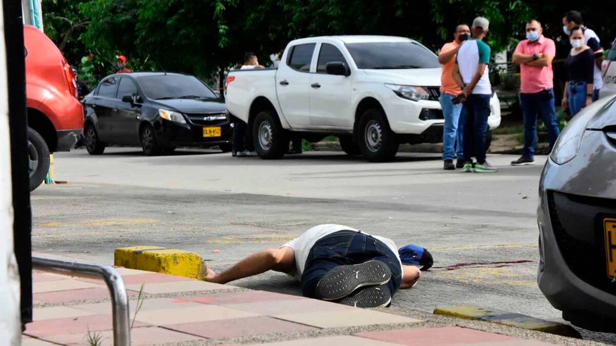 El cuerpo sin vida del supuesto delincuente quedó tirado en el lugar de estacionamiento de vehículos.