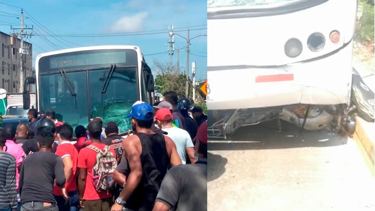 Un grave accidente de tránsito se registró a las 12:30 del mediodía de este viernes en la calle 63B con carrera 14B, prolongación Murillo, en el municipio de Soledad, donde dos personas resultaron lesionadas tras ser envestidas por un articulado del sistema masivo de Transmetro.