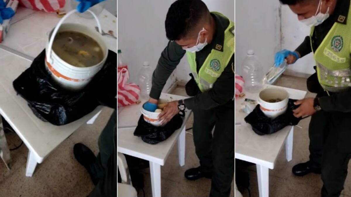 Los policías encargados de custodiar a los detenidos que están en las carceletas de la Estación de Policía en Galapa, se encontraron con un particular hallazgo este sábado pues el recipiente con sopa que le habían llevado a un detenido tenía doble fondo.
