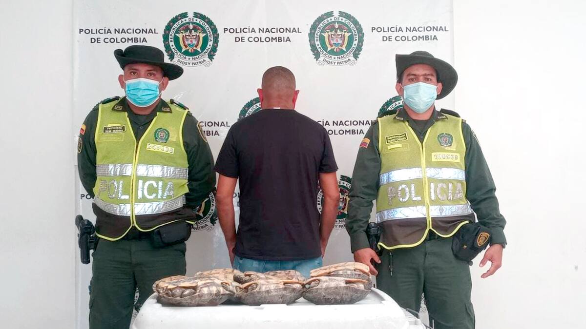 El hombre fue sorprendido transportando 22 hicoteas, una especie protegida ya que se encuentran en vía de extinción, en una maleta. La aprehensión se registró en el municipio de Santo Tomás.