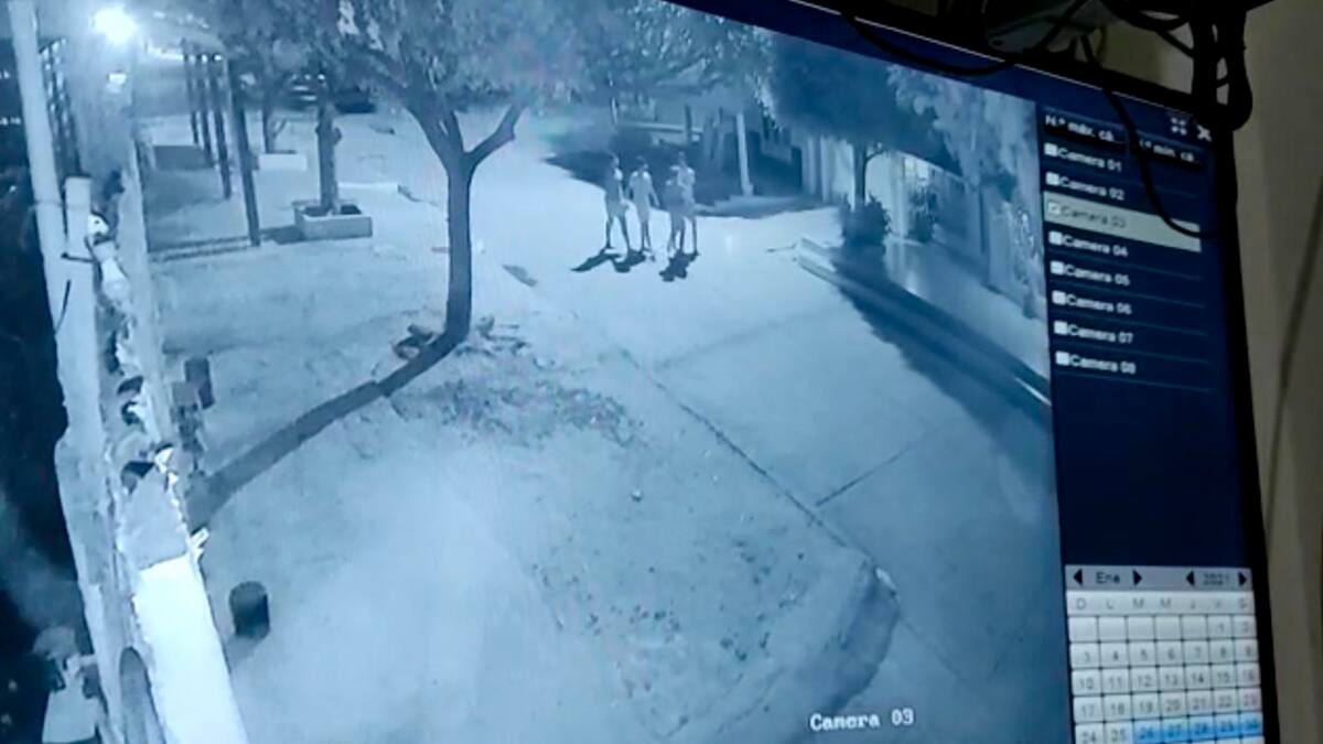 En los registros aparentemente los menores llevan consigo los elementos con los cuales habrían pintaron las cruces en los inmuebles.