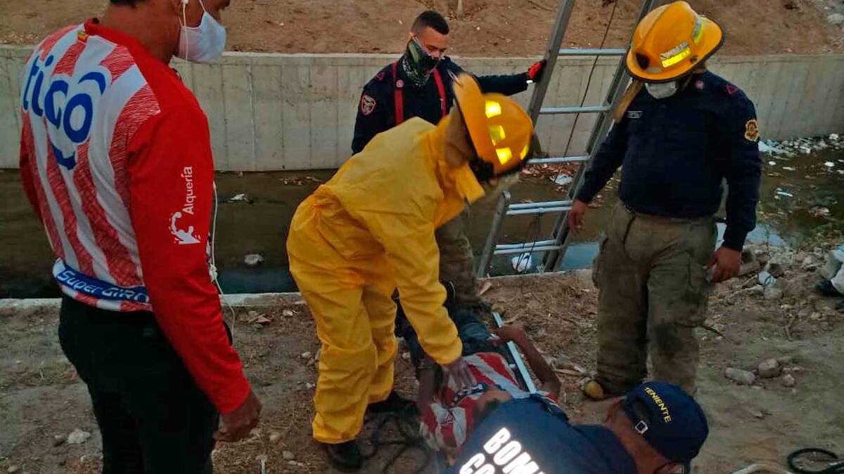 Desde las improvisadas tribunas, los curiosos le hacían bromas al sujeto que en ningún momento perdió la conciencia. Cuando los bomberos lograron sacarlo, las burlas fueron más, pero la víctima de este accidente sabatino parecía disfrutar de cada frase jocosa que le gritaban sus amigos.