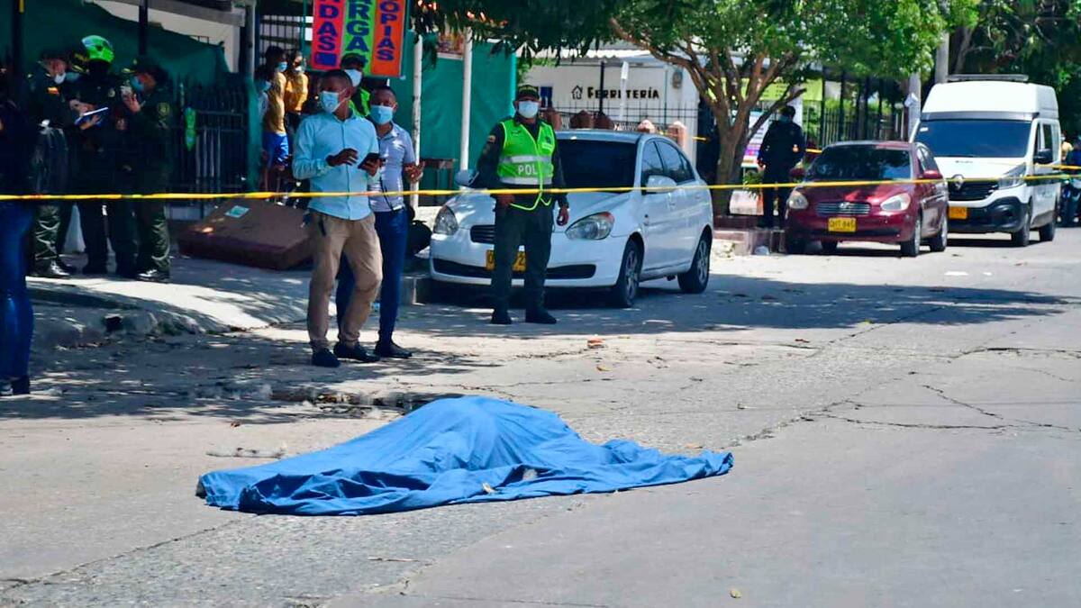 Con una sábana azul fue cubierto el cuerpo sin vida de un ciudadano norteamericano que fue asesinado a balazos al mediodía de este martes en la carrera 8 con calle 35A, barrio Las Palmas, sur de Barranquilla.