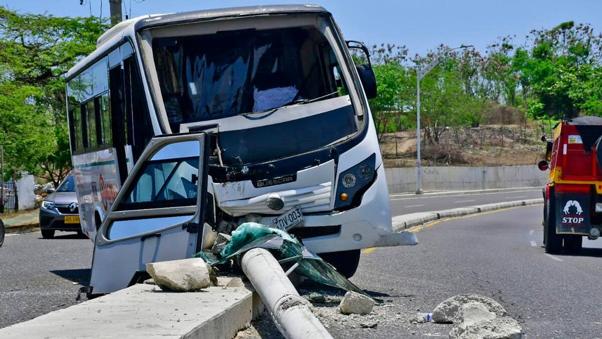 En el percance vial se vio involucrada una buseta de servicio especial cuyo conductor habría perdido el control y se subió a un andén para luego chocarse contra un poste de alumbrado público.