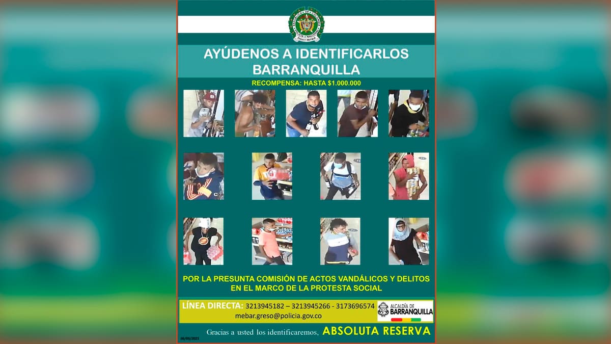 La Policía Metropolitana y la Alcaldía de Barranquilla revelaron el cartel de los más buscados por 'la presunta comisión de actos vandálicos y delitos en el marco de las protestas sociales', de acuerdo a lo informado por la institución armada en un comunicado.