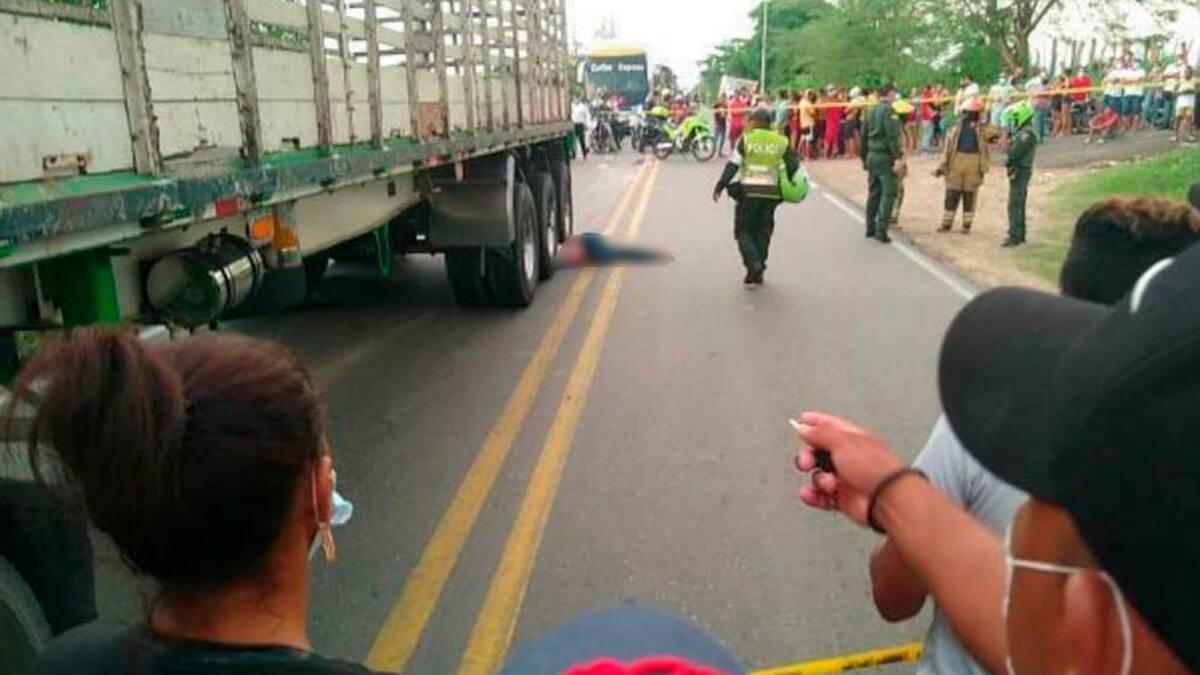 En la vía que comunica al corregimiento de Campeche con el municipio de Sabanalarga se registró un accidente de tránsito que dejó una triste escena: el cadáver de una mujer tirado sobre la carretera y cerca de este, la llanta de un tractocamión.
