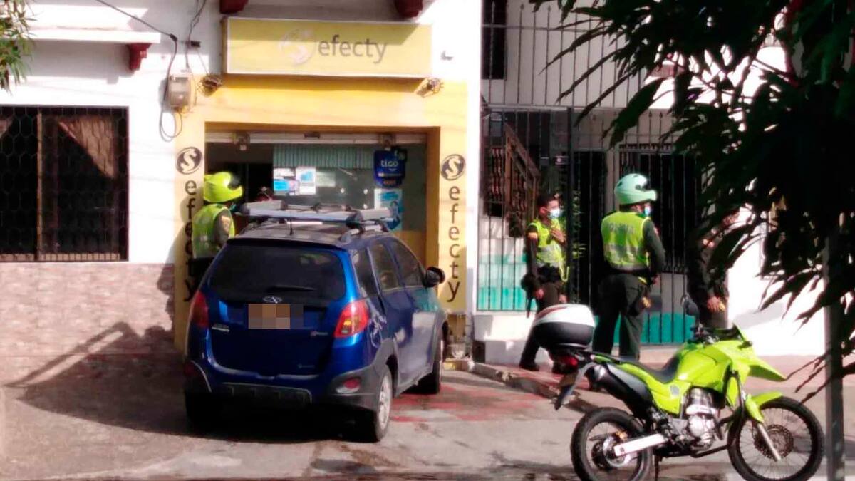 Dos hombres a bordo de una motocicleta y disfrazados de vigilantes intentaron cometer un atraco a un Efecty, ubicado en la calle 66 con carrera 45, barrio Boston.