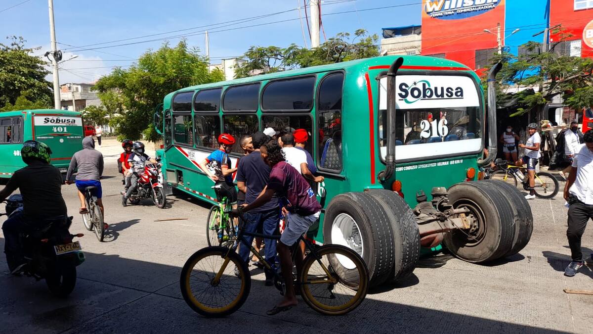 En la mañana de este domingo se registró un accidente de tránsito a la altura de la calle Murillo, cerca de la estación Pedro Ramayá, de Soledad, cuando un bus de servicio público se le salieron las dos llantas traseras.