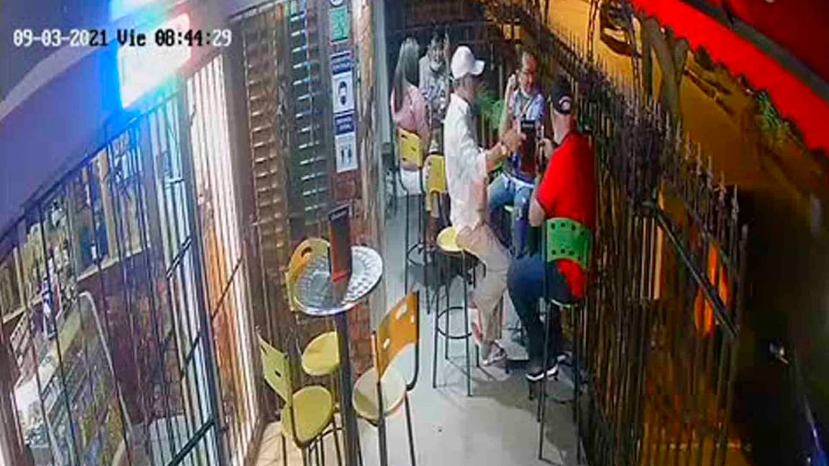 En un video de una cámara de seguridad de un establecimiento comercial, ubicado en la carrera 30 entre calles 23b y 24, se observa cómo unas personas se encontraban departiendo e ingiriendo bebidas embriagantes, cuando de repente llegaron dos hombres vestidos con suéteres blancos y armados.