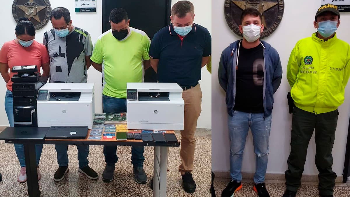 Durante las diligencias de allanamiento y registro, los funcionarios de la Sijin incautaron 2 computadores portátiles, 6teléfonos celulares, 8 tarjetas de diferentes bancos, 2 impresoras y una CPU.