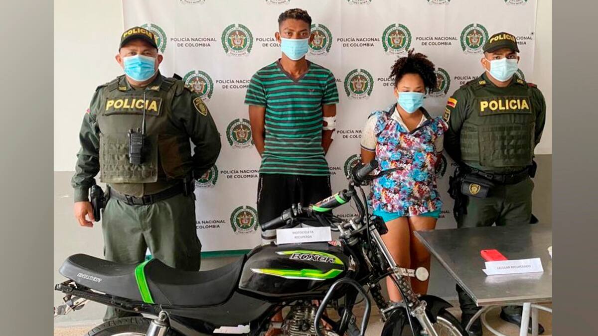 En momentos en que agredían a una persona para despojarla de su motocicleta y objetos personales, uniformados del cuadrante adscritos a la estación de Policía de Sabanalarga (Atlántico) capturaron en flagrancia a un hombre y a una mujer.