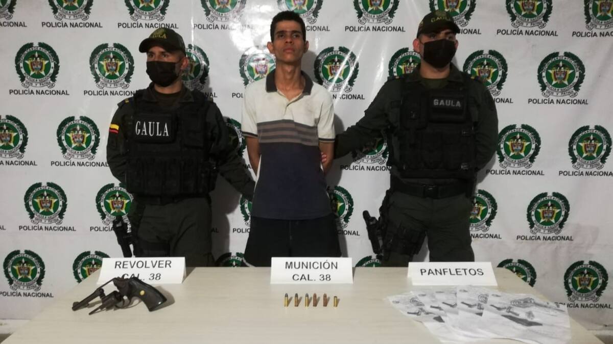 Portando una 38 y con cinco panfletos extorsivos firmados con el nombre de ‘los Costeños’. Las autoridades dieron a conocer en la tarde de este viernes la captura de alias Cotorro, señalado de ser uno de los cobradores de extorsiones a comerciantes al servicio de los de ‘Castor’.
