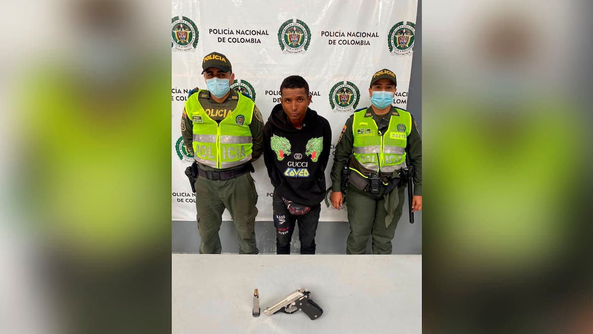 En la carrera 35B con calle 21, barrio Rebolo, la Policía Metropolitana de Barranquilla logró la captura de un hombre de 29 años de edad que, al parecer, portaba un arma de fuego tipo pistola.